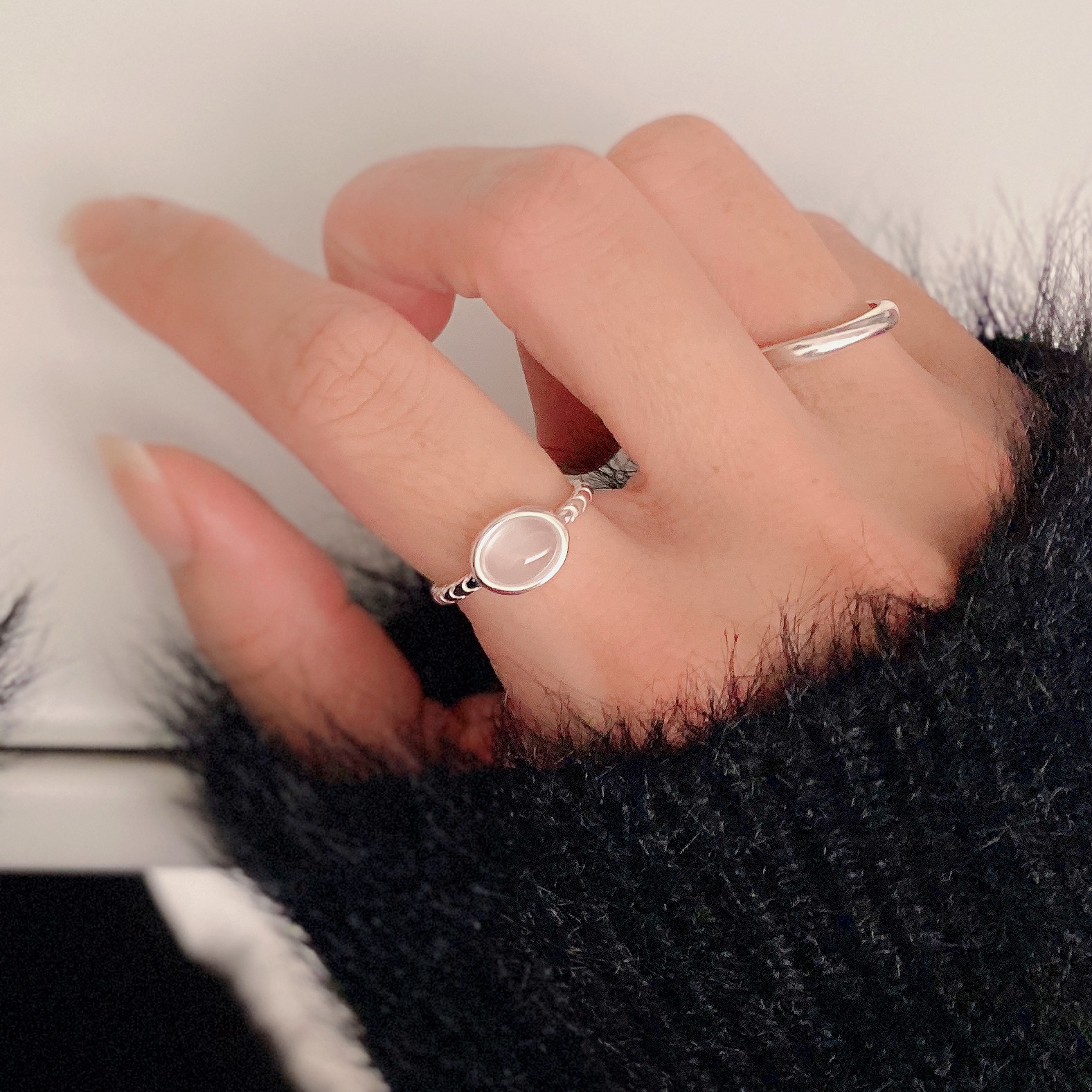 霧光之白.純銀白瑪瑙戒指
